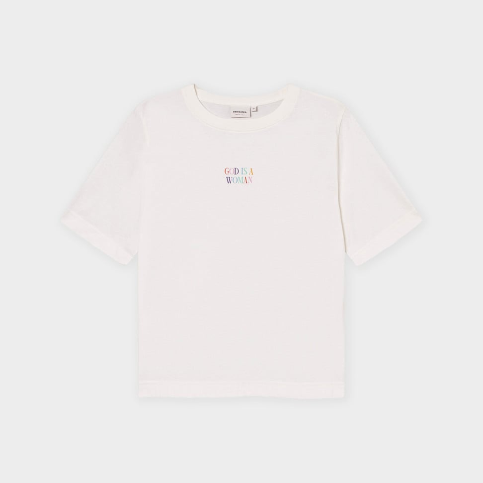 God is a Woman Off-White Vadstena T-Shirt from Dedicated. Relaxed crew neck t-shirt with slightly longer sleeves and a loose fit.