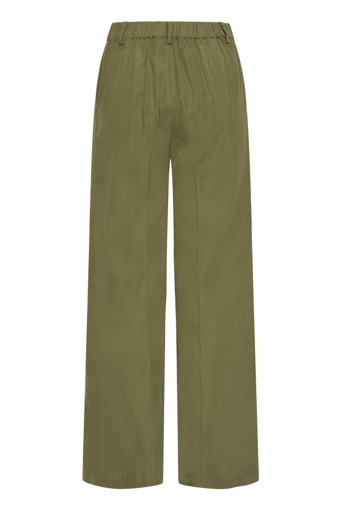 Leono Trousers from Atelier Reve. Casual fit trousers in a gorgeous Capulet Olive with an elasticated waist, belt loops, and a straight leg.