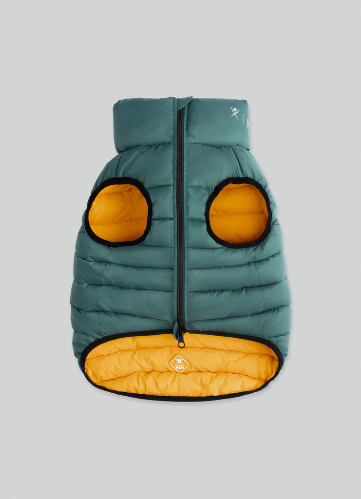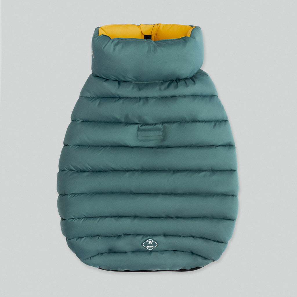Hackett x Hugo & Hudson presents this reversible forest green and gold dog puffer jacket. It really stands out for the comfort and protection it offers to your pet. The jacket features a reversible design which gives it greater versatility, a water-resistant fabric and practical zip fastening, so you can easily put it on your dog.